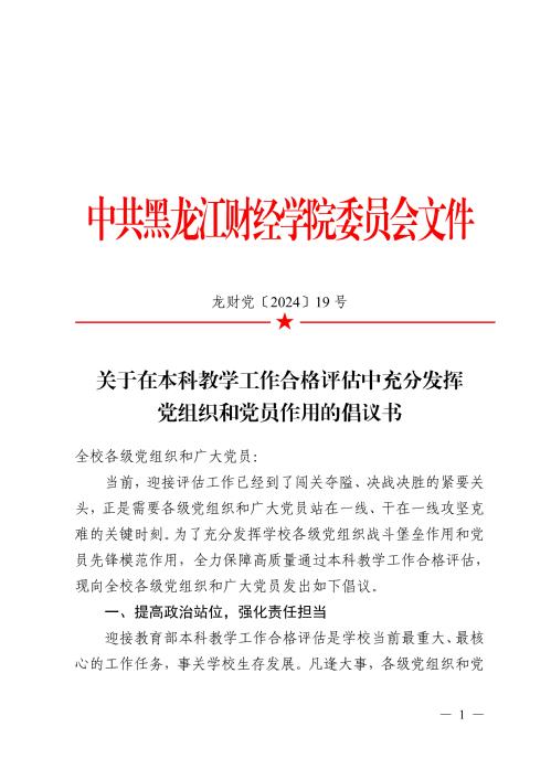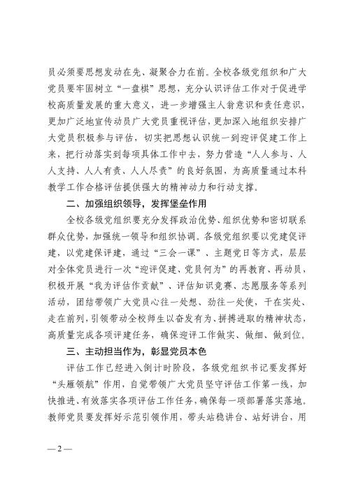 关于在本科教学工作合格评估中充分发挥党组织和党员作用的倡议书