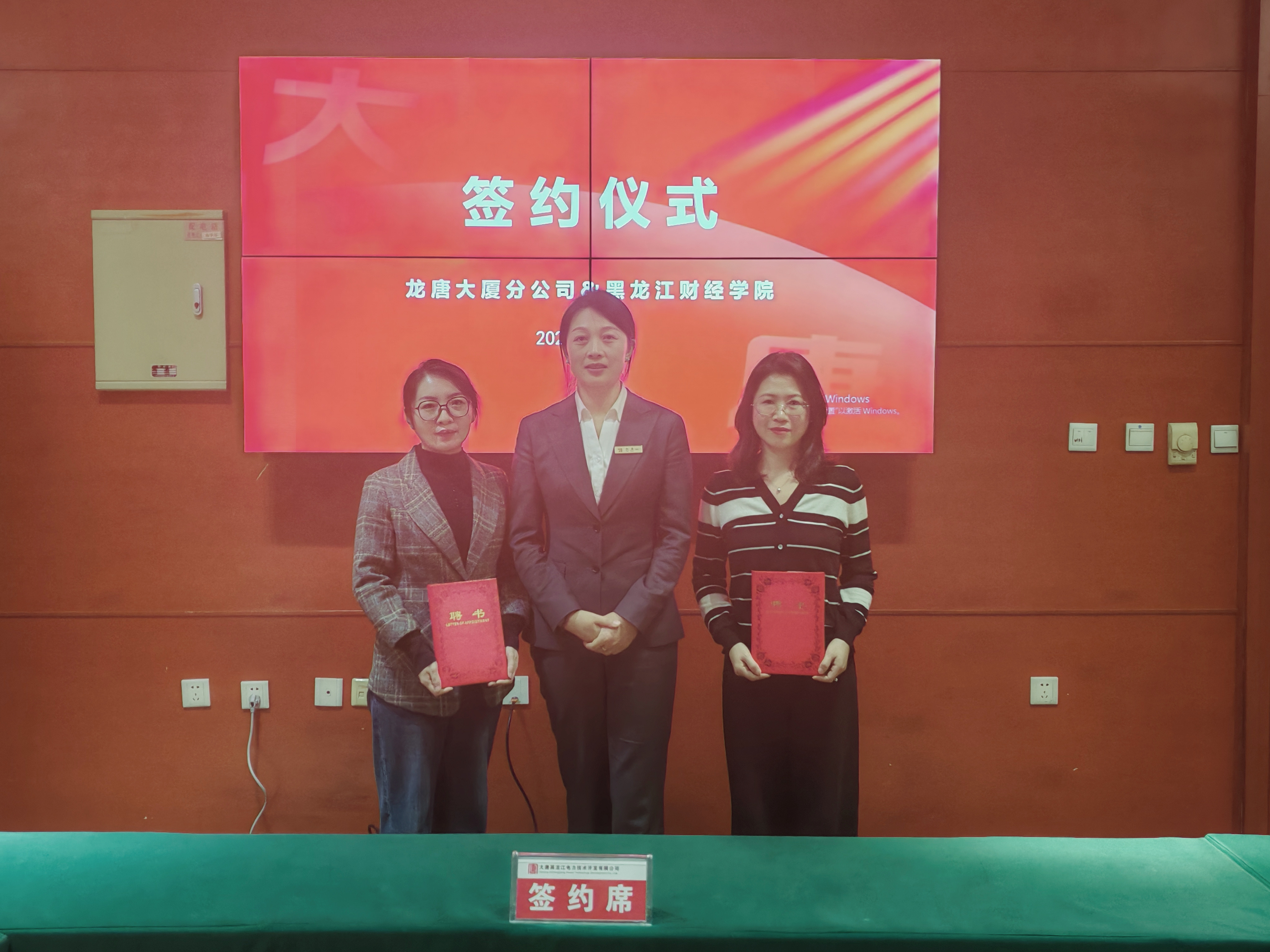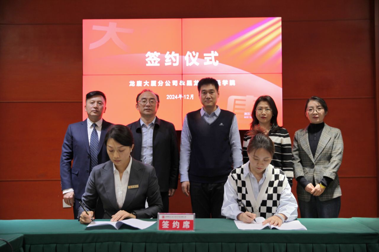 为践行我校服务地方办学定位,提升产教融合与协同育人质量,推动产业学院项目式培养模式实验改革,12月26日,管理学院与大唐黑龙江电力技术开发有限公司龙唐大厦分公司在哈尔滨松北区龙唐大厦举行校企合作签约仪式。双方就亚冬会酒店服务质量提升培训工作进行了总结,对即将开展的学生实习、营销项目推广等合作内容交换了意见。管理学院院长李海波、副院长郭琳琳、工商管理教研室主任韩瑞、酒店管理专业教师张春萍与大唐黑龙江电力技术开发有限公司副总经理赵永志、龙唐大厦分公司总经理孙晶、副总经理李刚、经营管理部经理张伟欣参加此次签约仪式。