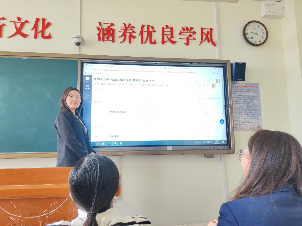 随后,在课堂演示环节,武刚老师以《智慧旅游》课程为例,生动展示了雨课堂在发布课件、视频、图文等方面的强大功能。他的演示操作流畅自如,让与会教师深刻感受到了雨课堂在提升教学效果方面的独特魅力。紧接着,卢萌老师则以《信息化教学设计与实践》课程为载体,全面展示了雨课堂在发布考试、作业、讨论、公告以及弹幕互动等方面的便捷性。她的演示不仅增强了课堂的互动性,更激发了学生们的学习热情。