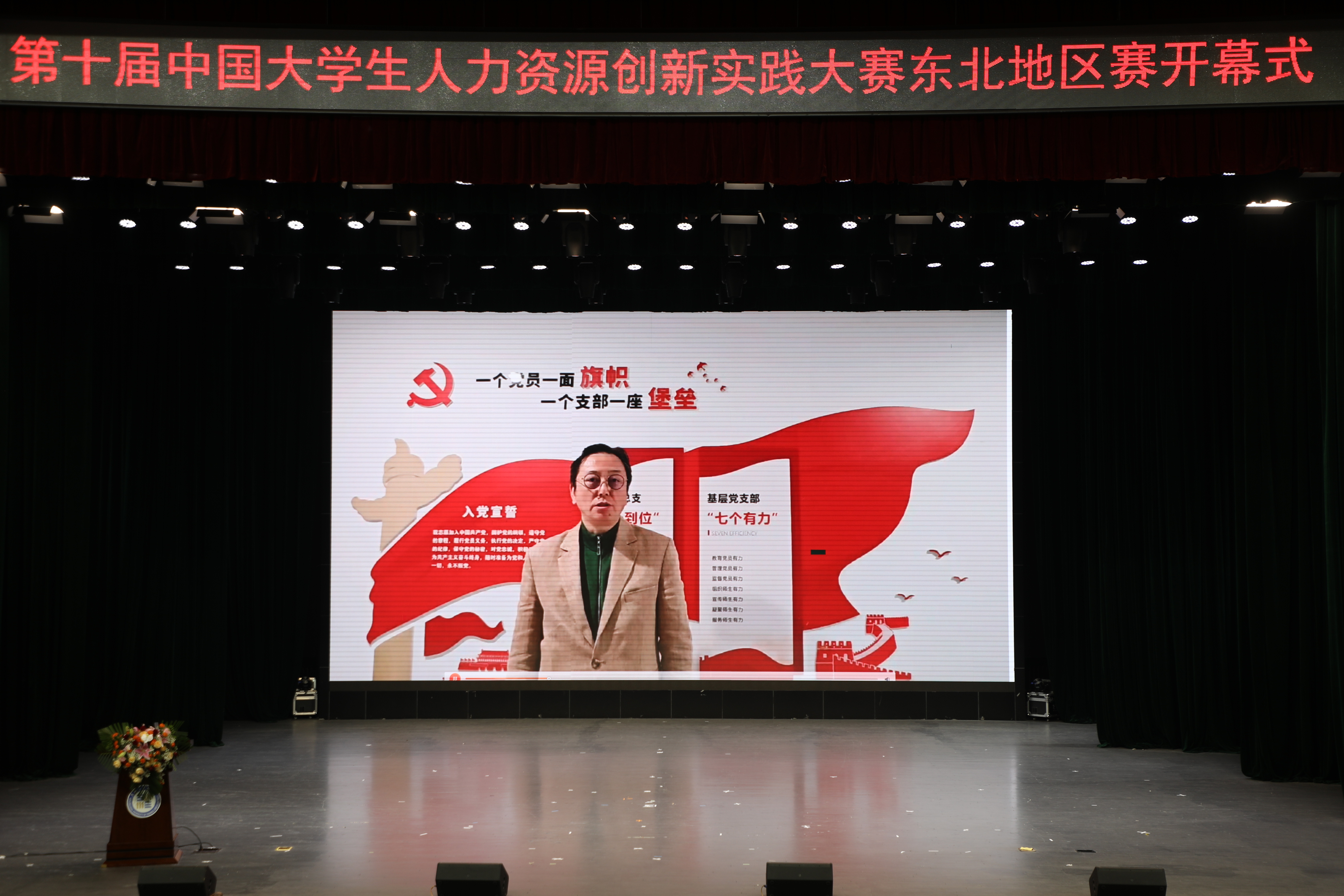 初浩楠通过视频发表致辞,代表大赛主委会对黑龙江财经学院筹办地区赛做出的努力表示感谢,并指出,中国大学生人力资源创新实践大赛历经十届,“以赛促学、以赛促教、以赛促就、产教融合”的理念一直贯彻始终,大赛促进高校师生从教学转向实践,从理论转向应用,推动人才培养与行业需求精准对接,让知识成果真正落地转化为实际价值。希望东北赛区的参赛选手发挥出最好水平,取得优异成绩。
